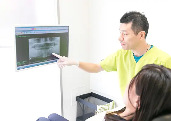 当院では、きちんと納得したうえで治療を受けていただくことを大切にしています。治療は歯を良くすると同時に傷つけることでもあるので、十分に理解していただいてから、後悔しない選択をしていただきたいと思います。 そのため、治療の説明、カウンセリングは丁寧に行います。分かりやすい言葉でお伝えすることはもちろん、言葉だけでなく視覚的にも理解していただけるよう工夫しています。治療の際も様々な機器を用いて、患者さまになるべく負担を与えない配慮をしています。 ただ治療するのではなく、先まで見据えた治療を心がけ、いつまでも健康を維持していただけるようサポートさせていただきます。